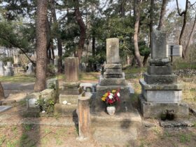 北陸の作家ゆかりの地 「島田清次郎の墓(美川墓地公苑)」(石川県白山市平加町) (写真下:「島田清次郎の墓」(石川県白山市平加町)、2025年3月27日午前訪問撮影)*真ん中の墓が島田清次郎の墓 (写真下… -