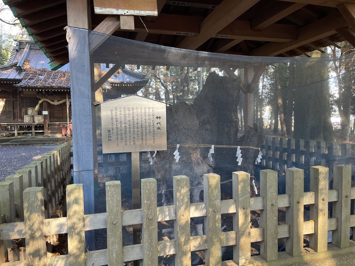 (写真下:生品神社境内の「神代木」(群馬県太田市新田市野井町)<*2021年12月25日午前訪問撮影>