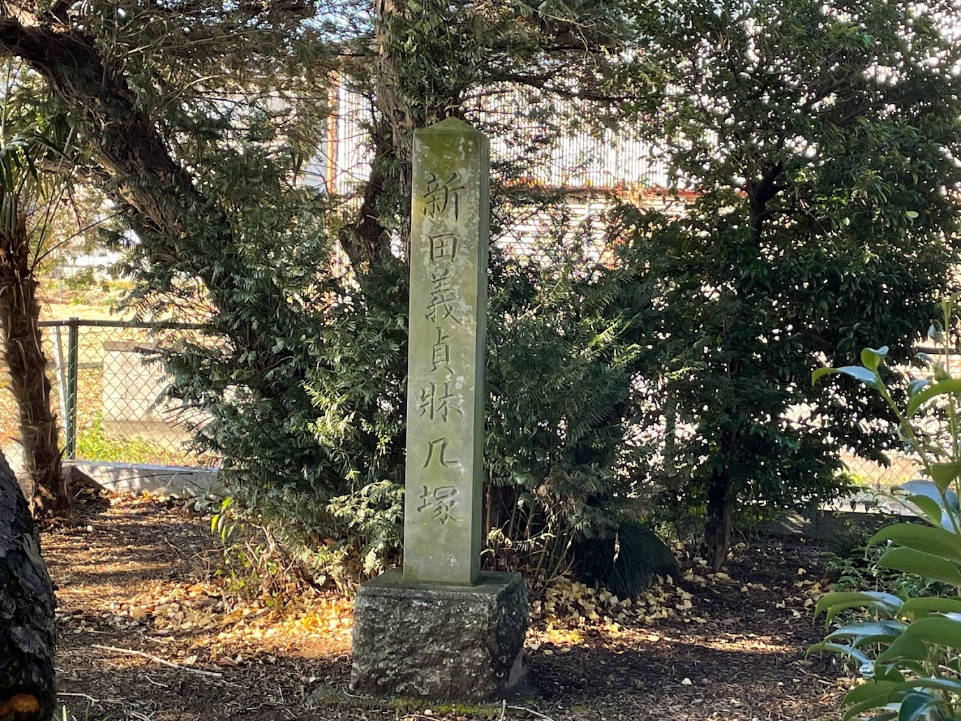 (写真下:生品神社境内の「床几塚」(群馬県太田市新田市野井町)<*2021年12月25日午前訪問撮影>