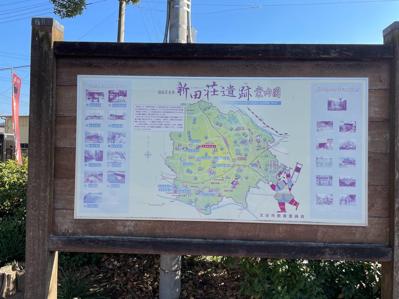 「史跡 新田荘遺跡」 ①円福寺境内 ②十二所神社境内 ③総持寺境内 ④長楽寺境内 ⑤東照宮境内 ⑥明王院境内 ⑦生品神社境内 ⑧反町館跡 ⑨江田館跡 ⑩重殿水源 ⑪矢太神水源