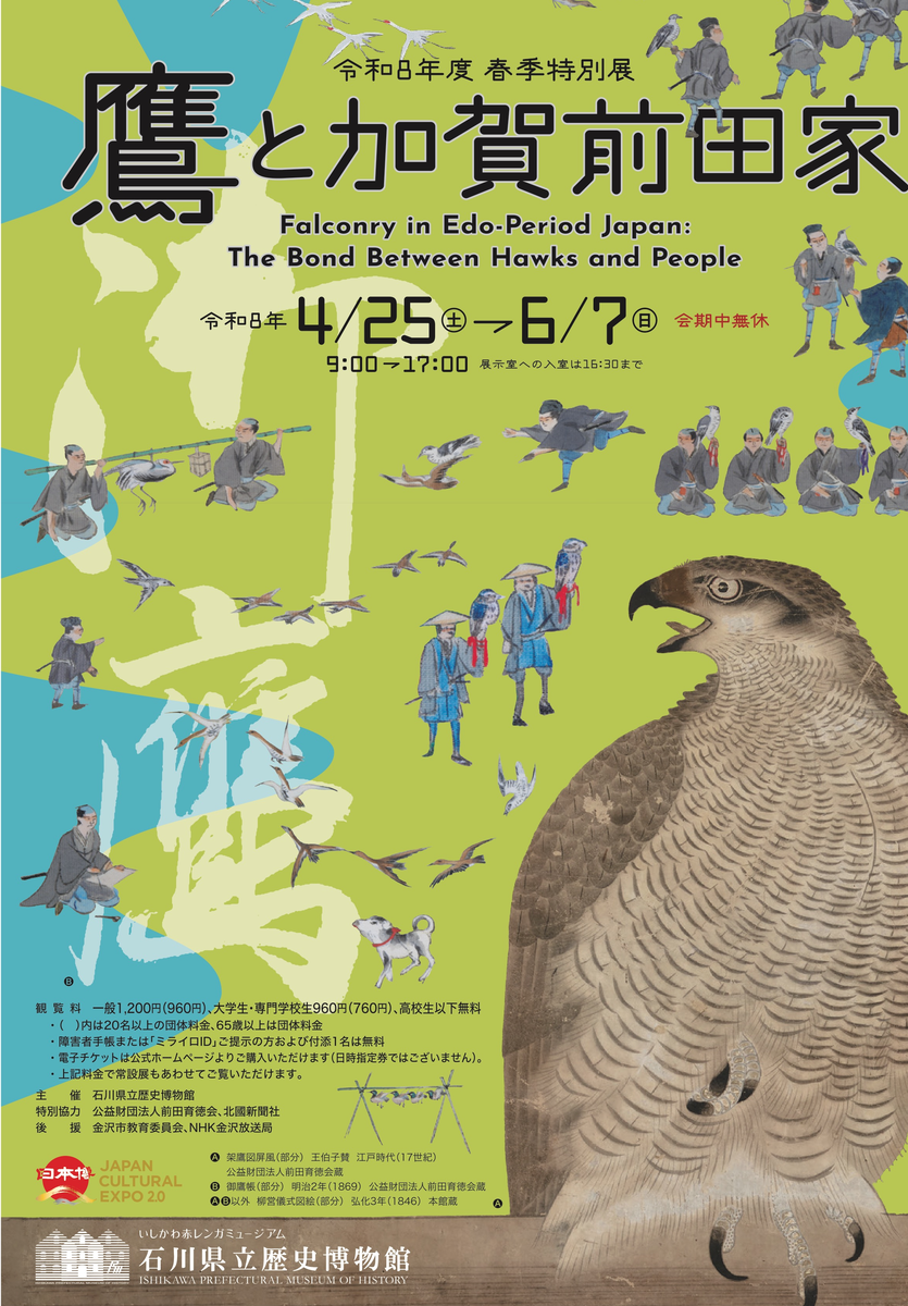 石川県立歴史博物館 令和8年度春季特別展「鷹と加賀前田家」(2026年4月25日~2026年6月7日)@石川県立歴史博物館(石川県金沢市)