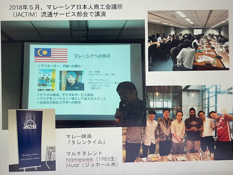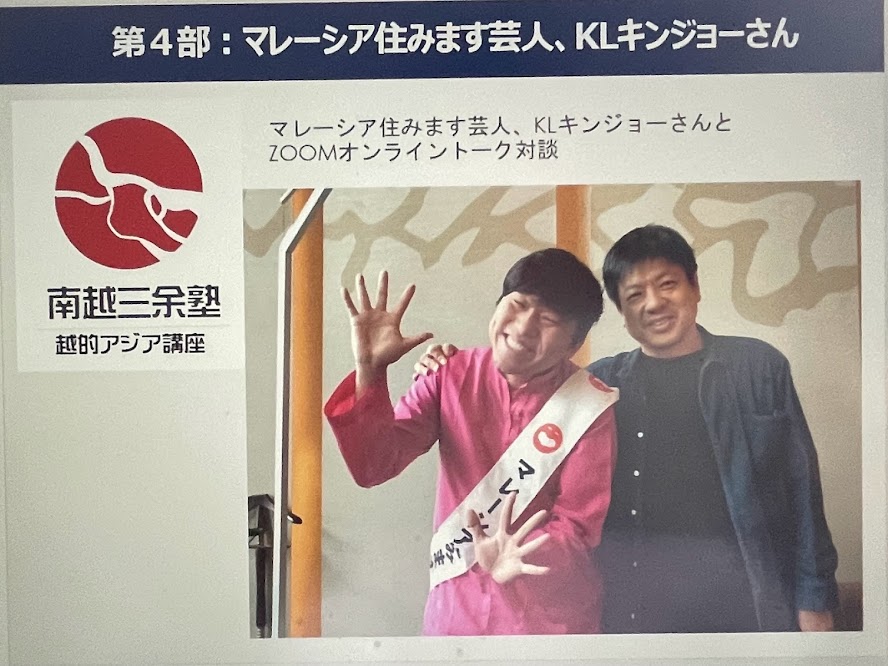 (写真上)吉本興業マレーシア住みます芸人・KLキンジョーさんとのオンライン対談(クアラルンプールのショッピングモールから)